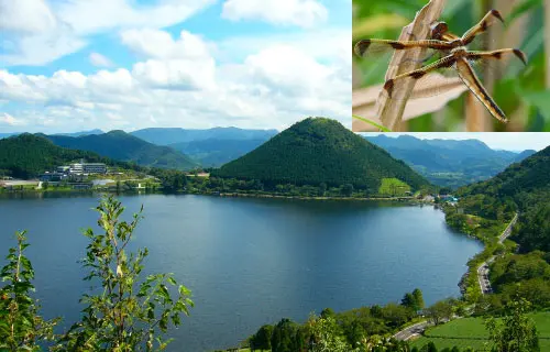 藺牟田池には「浮島」と呼ばれる泥炭が300近くあり、国の天然記念物に指定されています。又、希少野生動植物種のベッコウトンボや水鳥の生息する湿地として国際的なラムサール条約に登録されています。